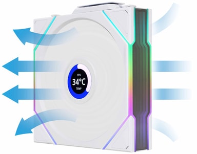 Lian Li UNI TL Wireless LCD 120 mm reversert PC vifte holder PC-en kjølig med hastigheter på opptil 1900 o/min. Den har ARGB-belysning, en innebygd skjerm for systeminformasjon og et reversert design for bedre luftstrøm.Les mer om produktet