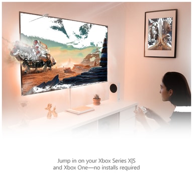 Xbox Cloud Gaming (Beta): Krever støttet spill og kan kreve støttet Bluetooth®-kontroller (selges separat). Utvalgte regioner og enheter. Strømmingsbegrensninger gjelder, servertilgjengelighet og ventetider kan variere. Krever internett, ISP-avgifter gjelder. xbox.com/cloudgaming. Tilgjengelig på utvalgte Samsung-enheter inkludert 2020 og nyere smart-TV-er, skjermer og The Freestyle-projektor, detaljer på samsung.com/us/televisions-home-theater/tvs/gaming-hub. Kompatible kontrollermodeller finner du på https://support.xbox.com/en-US/help/games-apps/cloud-gaming/connect-controller-smart-tv.