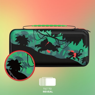 Turtle Beach PlayTrek Donkey Kong Switch 2 etui er et offisielt lisensiert Switch 2 hardt skall etui med et skiftende lentikulært Donkey Kong design. Det har et robust EVA-eksteriør, plass til 12 spill og en polstret klaff for å beskytte skjermen.