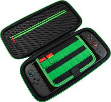 Turtle Beach PlayTrek Donkey Kong Switch 2 etui er et offisielt lisensiert Switch 2 hardt skall etui med et skiftende lentikulært Donkey Kong design. Det har et robust EVA-eksteriør, plass til 12 spill og en polstret klaff for å beskytte skjermen.Les mer om produktet