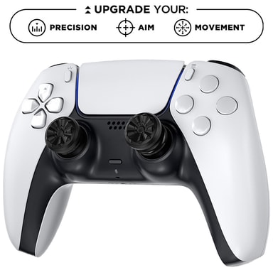 Kontrol Freek FPS Galaxy PS5 tommelgrep er designet for å oppgradere sikte og bevegelse i FPS-spill. De har et sett med to høyder med en midthøy pinne for bedre kontroll med venstre pinne og en høy pinne for nøyaktighet med høyre pinne.