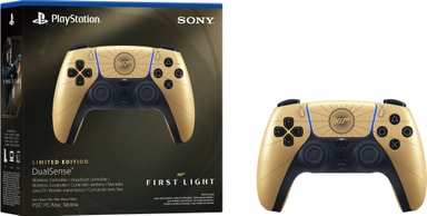 PS5 DualSense 007 First Light Limited Edition kontroller løfter din gamingopplevelse med sitt stilrene design i gull, oppslukende haptisk tilbakemelding, adaptive triggere, Bluetooth-tilkobling, og en integrert mikrofon.Les mer om produktet