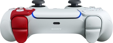 Kontrolleren har klassiske PS-knapper med D-pad, doble analogspaker, L1/L2 og røde R1/R2-avtrekkere. L2/R2-avtrekkerne gir variabel motstand avhengig av handlingene i spillet. Den har også en dempeknapp for øyeblikkelig stemmekontroll og en create-knapp for opptak av spilløyeblikk.