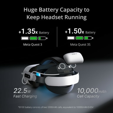 BOBOVR E3 Pro for Meta Quest 3/3S hodestropp med 10000mAh batteri VR-hodesetthodebånd【Offisiell sertifisering】 Laget for Meta-sertifisert hodestropp designet spesielt for Meta Quest 3/3S.【Optimalisert design】 Lett passform optimalisert for aktiv VR-sLes mer om produktet
