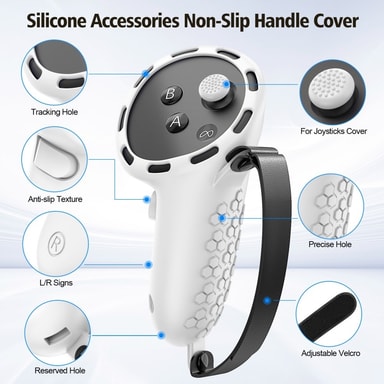 Silikontilbehørssett for Meta Quest 3S med VR-headsetdeksel / kontrollgrep / ansiktsmaske - Hvit【Fullstendig beskyttelse】 Silikonsett med syv deler gir omfattende beskyttelse for VR-headsettet og kontrollerene dine.【Perfekt passform】 Spesialstøpt desLes mer om produktet