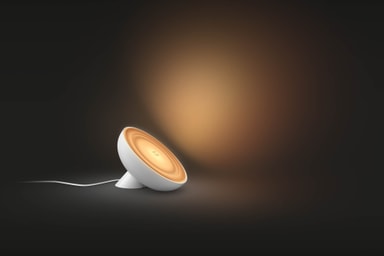 Plugg Philips Hue Bloom LED-lampe i kontakten og skap en fargerik atmosfære hjemme takket være de mange RGB-farger man kan velge mellom. Lampen er videre dimbar, slik at du kan velge mellom både varmhvite og kaldvhite toner. Og via Bluetooth og appen Philips Hue kan lampen styres med både smarttelefon, bærbar PC og nettbrett.