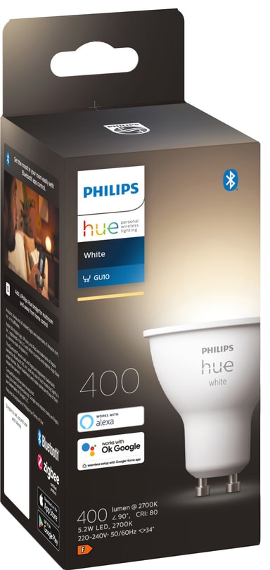 Philips Hue White 5,2W GU10 er en smart løsning for spotlysene dine. Få mykt hvitt lys for å fylle hjemmet ditt med koselig belysning. Kontroller lyset på en enkel måte med Bluetooth-appen eller med Hue Bridge for enda flere funksjoner.Les mer om produktet