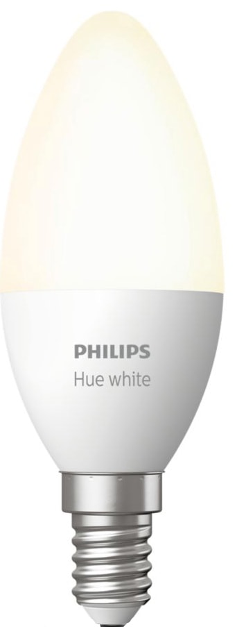 Philips Hue White 5,5W B39 E14 vil fylle hjemmet ditt i et mykt hvitt lys. Den smarte lyspæren kan dimmes og kan enkelt kontrolleres via Hue Bluetooth-appen eller Hue Bridge.Les mer om produktet