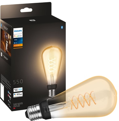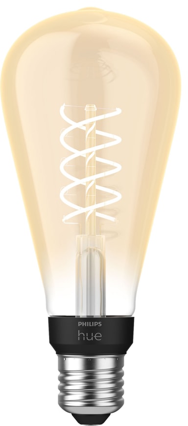 Philips Hue White lyspære 7,2W Filament ST72 E27 kommer i et sofistikert design som vil skape en god atmosfære i ditt hjem. LED-pæren med en myk behagelig glød og et vintage design tilbyr både dimmefunksjon og smartkontroll.Les mer om produktet