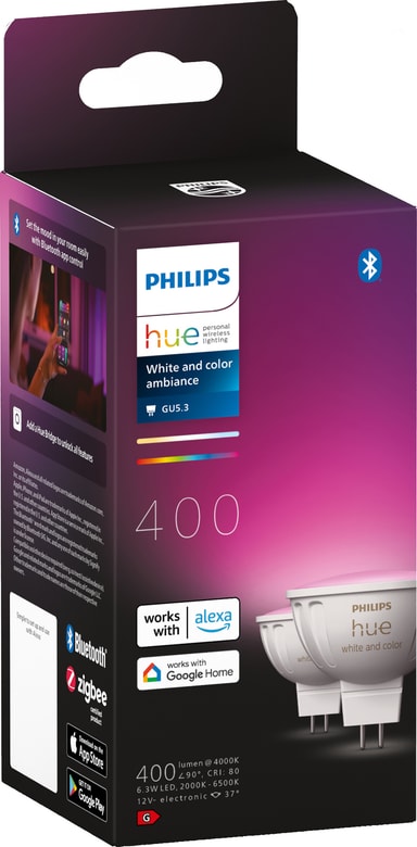 • Philips Hue WCA MR16 LED-lyspære 6,3 W 2-pk