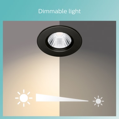 Philips Dive Ceiling spotlys 5,5 W 3-pakning lar deg lyse opp områder både innendørs og utendørs i hjemmet ditt. Det innfelte spotlyset er IP65-sertifisert, noe som gjør den bestandig mot vann, støv og fuktighet. Takket være EyeComfort-teknologien kan du lyse opp huset med et varmt 2700K dimbart lys uten å måtte bekymre deg for synet.