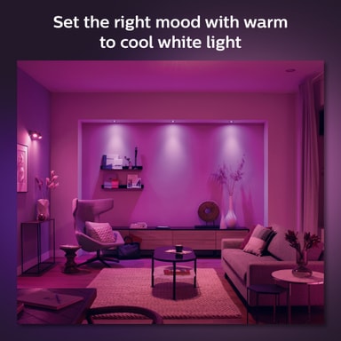 Transformer hjemmet ditt med Philips Hue Centura innfelt spotlys 3x5,7W. Du kan velge mellom 16 millioner farger med kun noen få telefonklikk, én av dem vil med sikkerhet passe dine aktiviteter og humør. Takket være Philips Hue-appen kan du kontrollere lysoppsettet ditt uten å reise deg fra sofaen.