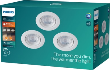 Philips Impala Ceiling spotlys 6W 3-pakning er en stilig lysløsning til huset eller leiligheten din. Den innfelte taklampen har justerbar dimming, samtidig som den beholder lysstyrken og gir deg et behagelig stemningsfullt gult lys.Les mer om produktet