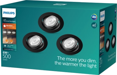 Philips Impala Ceiling spotlys 6W 3-pakning er en stilig lysløsning til huset eller leiligheten din. Den innfelte taklampen har justerbar dimming, samtidig som den beholder lysstyrken og gir deg et behagelig stemningsfullt gult lys.Les mer om produktet
