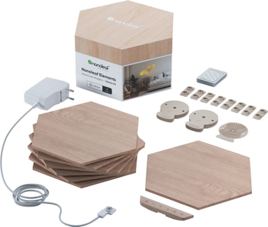 Med Nanoleaf Elements Wood startsett kan du enkelt skape den rette atmosfæren hjemme, uansett anledning. Settet har alt du trenger, fra allsidige lyspaneler med et bredt fargeutvalg, samt et kontrollpanel som kan kobles til smarttelefonen din.