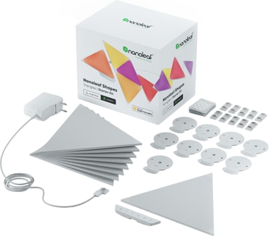 Nanoleaf Shapes Triangles startpakke lar deg oppdage en type belysning. Den tilbyr alt du trenger for å sette opp den nye belysningen, samt 9 Nanoleaf-paneler med mer enn 16 millioner farger, Wi-Fi-tilkobling og berøringskontroll.Les mer om produktet
