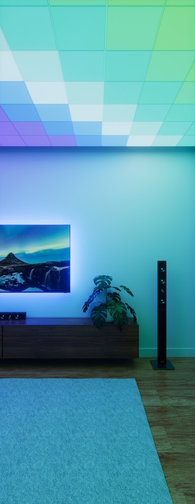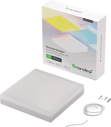 Nanoleaf Skylight taklampe NF083E00-1SL på 24 watt har et modulært design, slik at du kan koble til opptil 100 ruter for skreddersydde oppsett. Du kan styre den via Nanoleaf-appen og synkronisere den med Apple Home, SmartThings eller Google AssistantLes mer om produktet