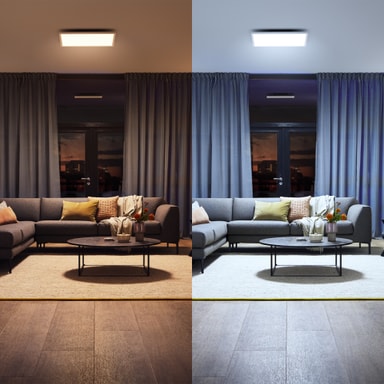 Med justerbar hvit ambiance kan du veksle mellom varme og kjølige toner for å passe enhver situasjon, sterkt for fokus, mykt for avslapning. Panelet gir balansert, blendfritt lys som forbedrer komfort og atmosfære.