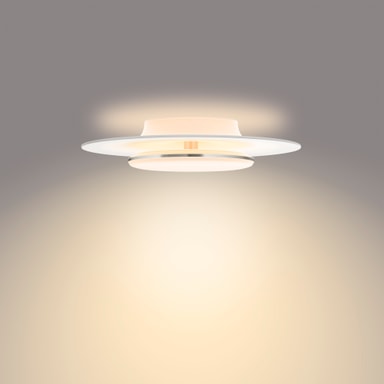 Philips Garnet taklampe kombinerer et unikt og elegant design med den perfekte balansen mellom direkte og indirekte lys i en varm hvit tone. Takket være sine tre lyssoner og integrerte SceneSwitch-funksjon kan du enkelt justere stemningen i rommet slik at den passer perfekt til alle dine aktiviteter. Bytt mellom tre lysinnstillinger, optimalisert for dine daglige rutiner, ganske enkelt ved å slå av og på den eksisterende veggbryteren din. Ingen dimmer eller ekstra installasjon er nødvendig. Denne Garnet-armaturen har hvite designdetaljer og en diameter på 40 cm.