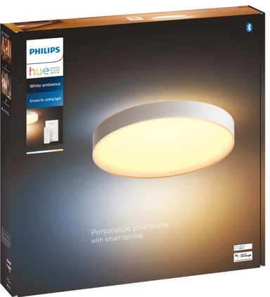 Framhev din stue og skap en atmosfære som vil passe til situasjonen, uansett hva den skulle være, med Philips Hue Enrave XL taklampe. Denne ekstra store taklampen vill passe sømløst inn i alle større rom i hjemmet ditt og tilbyr 50000 nyanser av hvitt lys i varme til kjølige toner, dimmefunksjoner samt fire praktiske lysoppskrifter som vil hjelpe deg gjennom daglige oppgaver. Takket være Philips Hue-appen og den inkluderte dimmebryteren kan du nyte umiddelbar kontroll over belysningen.