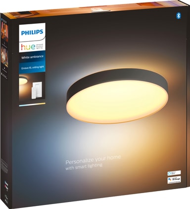 Framhev din stue og skap en atmosfære som vil passe til situasjonen, uansett hva den skulle være, med Philips Hue Enrave XL taklampe. Denne ekstra store taklampen vill passe sømløst inn i alle større rom i hjemmet ditt og tilbyr 50000 nyanser av hvitt lys i varme til kjølige toner, dimmefunksjoner samt fire praktiske lysoppskrifter som vil hjelpe deg gjennom daglige oppgaver. Takket være Philips Hue-appen og den inkluderte dimmebryteren kan du nyte umiddelbar kontroll over belysningen.