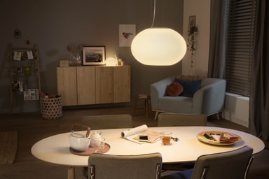 Koble pendellampen med en Philips Hue Bridge og få tilgang til flere funksjoner, inkludert stemmestyring, og nyt fordelene med smart belysning til det fulle. Philips Hue Bridge er ikke inkludert i pakken og må kjøpes separat.