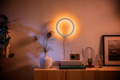 Med Philips Hue Sana vegglampe 20W 24V kan du skap lyseffekter for enhver situasjon takket være RGB-fargespekteret, varm til kjølig hvitfarge og dimmefunksjoner. Du kan enkelt holde kontrollen med Philips Hue-appen.Les mer om produktet