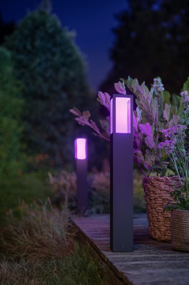 Philips Hue Impress WACA søylelampe er kompatibel med en Philips Hue-app som lar deg velge den belysningsfargen du ønsker. Dermed kan du skape en magisk og fargerik atmosfære til uteområdet ditt.Les mer om produktet