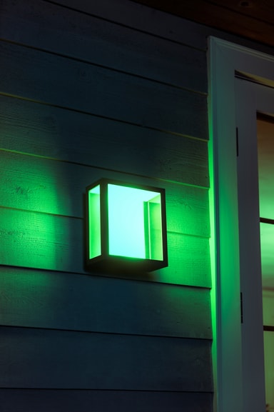 Philips Hue Impress WACA stor vegglanterne er værbestandig og vil hjelpe deg med å nyte opphold i hagen eller på terrassen. Velg blant 16 millioner forskjellige farger, sett på en timer og tilpass belysningen ved hjelp av smarttelefonen din.