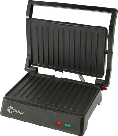 Tilbered herlige paninier og sandwicher med 1000W Equip paninigrill 73128. Den er designet for å ha plass til to brødskiver, med non-stick belegg og varmebestandige sider for rask, trygg, og enkel matlaging.Les mer om produktet