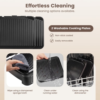De avtakbare non-stick-platene kan enkelt tas av for problemfri vask, slik at du raskt kan rengjøre grillen etter hvert deilig måltid.