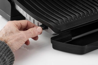Grillplatene er avtakbare, har et non-stick-belegg og kan bli satt i vaskemaskinen etter bruk. Grillplatene er hellende så overflødig fett enkelt kan renne av.
