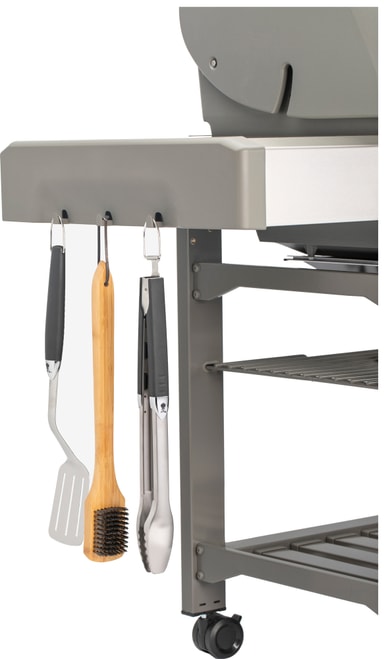 Med denne gassgrillen er du ikke begrenset til bare stekeområdet. Den kommer med to sidebord som tilbyr et ideelt sted for tilberedning av diverse tilbehør eller det kan ganske enkelt brukes som et ekstra bord.