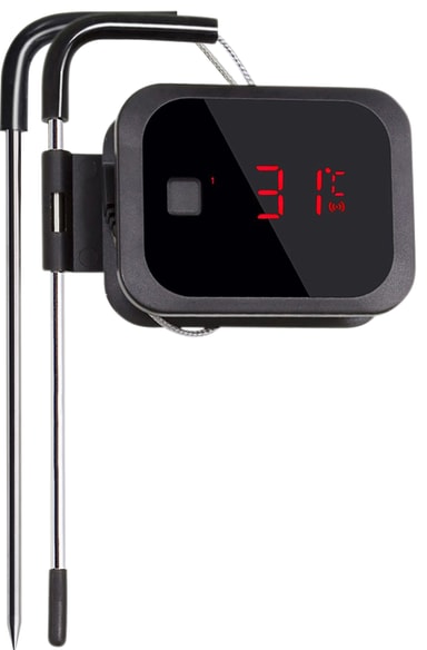 FCC BBQ digitalt termometer FCCA10031 har innebygd Bluetooth, smart-app, to sondere, og 14 ulike innstillinger som gir deg presis temperaturmåling på alle rettene du griller. Last ned FCC BBQ-appen gratis og få full kontroll over grillingen. Appen er tilgengelig for både iOS- og Android-brukere.