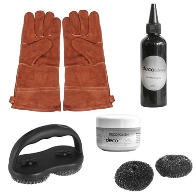Tilbehørspakken "Clean Stainless" til rustfrie utekjøkken gjør det mulig å forlenge levetiden på grillen samtidig som du får et skinnende rent utekjøkken som imponerer gjestene dine. En grill bør rengjøres regelmessig for å opprettholde hygiene, sikkerhet og ytelse. Dette rengjøringssettet inneholder et 2-pakning grillhansker i lær, en dyptvirkende decopolish 75 ml for rustfritt stål, en pleiende olje 100 ml som får utekjøkkenet ditt til å skinne, en grillbørste med håndtak og ekstra refill i 2-pakning som gjør rengjøringen både rask og enkel.