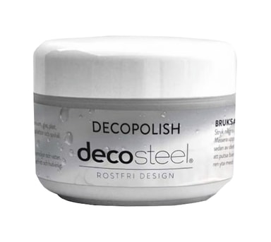 • Decopolish polerpasta renser oksidsjikt, kraftig smuss og sterke belegg på rustfrie overflater skånsomt