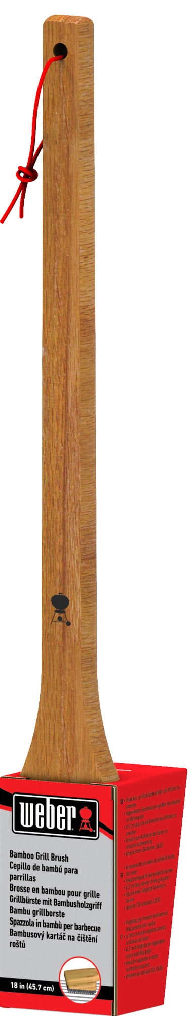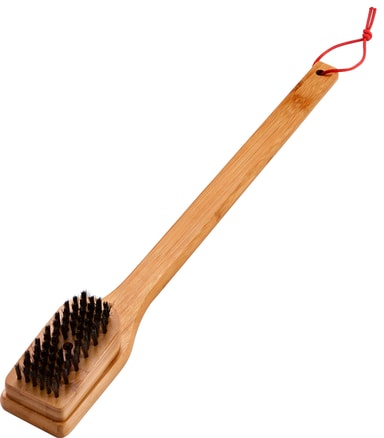Fjern fett og matrester fra grillen, slik at den er klar til neste grilløkt. Weber grillbørste 6276 har vinklet børstehode, bambushåndtak og er 46 cm lang. Den kan rengjøre alle Weber-griller.