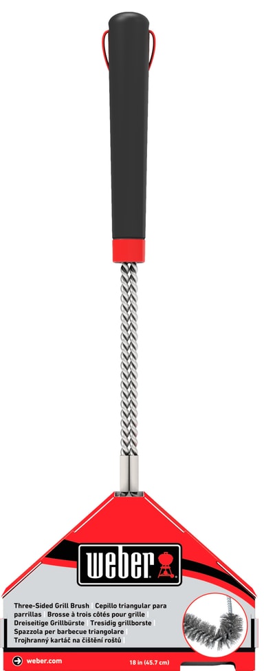 Weber tresidet grillbørste 6278 vil hjelpe deg holde grillen din ren og alltid klar for neste grilling. Takket være designet med effektive børster vil den enkelt fjerne fett og matrester fra ristene. For enkel oppbevaring kommer den også med en løkke for opphenging.
