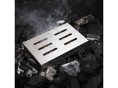 Røykboks med lokk av rustfritt stål. Til røyking på grill og kulegrill. Gir kjøttet en røykfylt og aromatisk smak. Kan brukes med flis, trepellets og flis.Les mer om produktet
