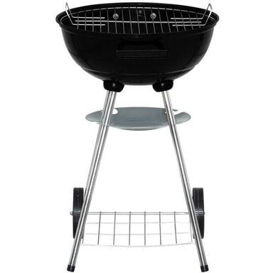 Kolgaller av galvaniserat stål. Under grillen finns ett löstagbart askfat. Ventiler i både grillskål och lock. 2 stora hjul underlättar förflyttning av grillen.
