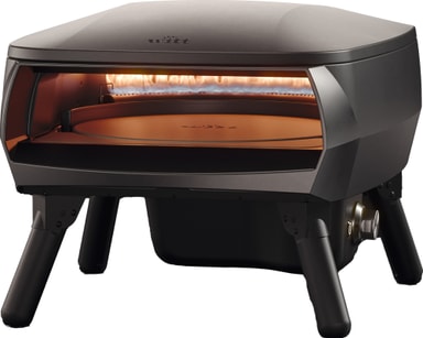 Denne bærbare pizzaovnen har en cordierittgrill og en ramme i rustfritt stål som sikrer en jevn, perfekt stekt skorpe uten å brenne seg fast. Den har også en roterende stein og en C-formet gassbrenner.