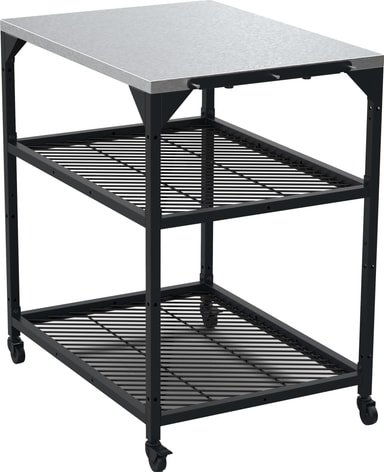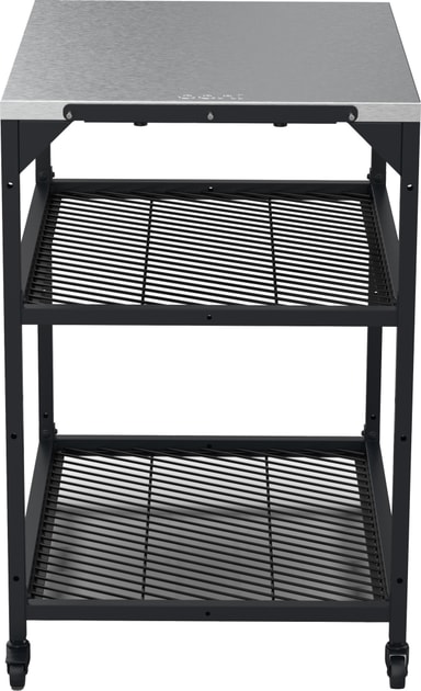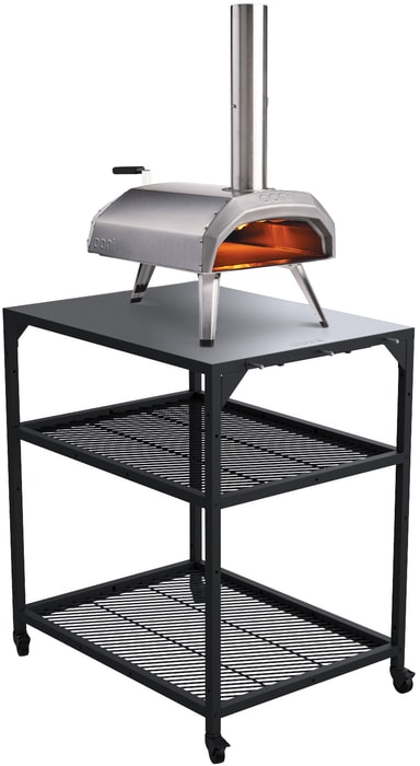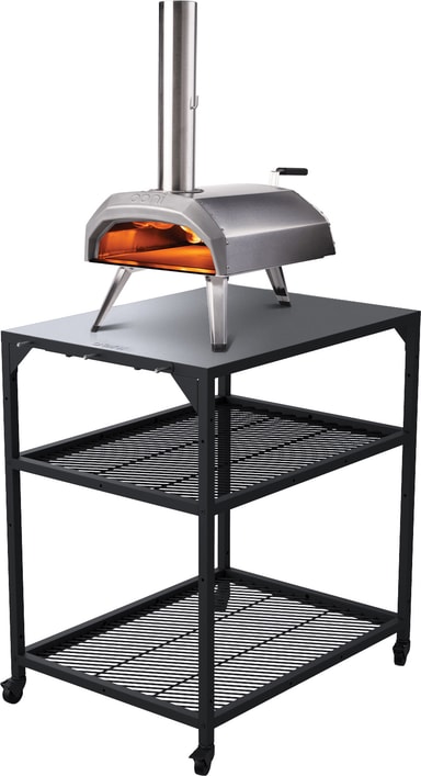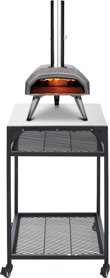 Ooni modulært pizzabord UU-P2F000 er et slitesterkt stativ for tilberedning og servering av pizza utendørs. Det er laget av pulverlakkert karbonstål og har to hyller og kroker for oppbevaring av tilbehør som pizzaspader og serveringsskjeer.Les mer om produktet