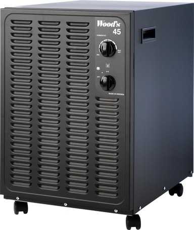 Denne Woods luftavfukteren SW45FB sikrer at kjelleren din holdes fuktfri. Den har en kapasitet på 25,5 liter og 550 watts styrke. Den er anbefalt for rom med areal på opptil 190 m2, og du kan enkelt flytte rundt på den. Den kan brukes med direkte avløp eller vanntank, og den har to hastighetsnivå.