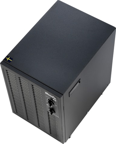 Du kan velge mellom to hastigheter etter behov. Apparatet skrur seg automatisk av dersom temperaturen synker under 2 grader, og skrur seg på igjen når den stiger igjen.