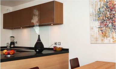 Kompakt og diskret passer den perfekt i alle rom. Du kan sette den overalt i huset ditt, men vi anbefaler å sette den litt høyt i rommet, slik at fuktigheten får anledning til å bli tatt opp i luften før de ørsmå dråpene faller nedover mot gulvet.