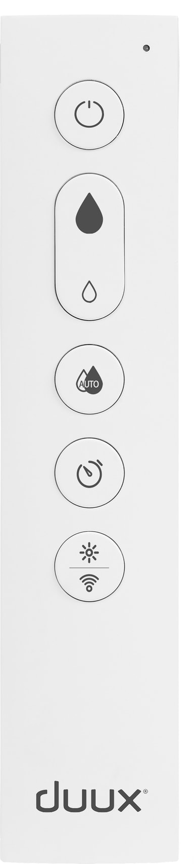 Alt av nødvendig informasjon og innstillinger er tilgjengelig for deg på en LED-skjerm med svært høy oppløsning. Du kan styre luftfukteren med en fjernkontroll som kan oppbevares på enheten eller ta i bruk Duux-appen som er gratis og tilgjengelig for både Android og iOS.