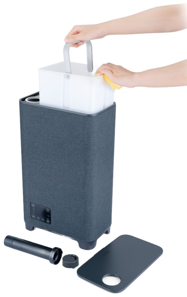 Den avtakbare 5-liters vanntanken kan enkelt løftes for rask påfylling. En full tank varer lenger, noe som reduserer vedlikeholdsbehovet.