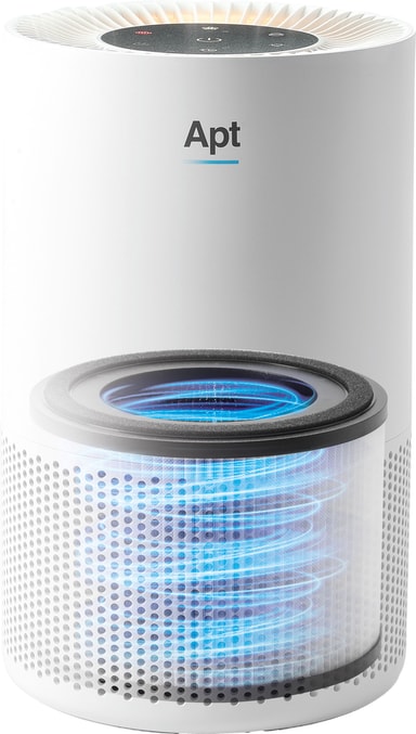 Apt Pure Compact 102luftrenser er egnet for små rom på opptil 10-15 m². Den bruker HEPA 13-filtrering med aktivt karbon med en CADR på 102 m³/t for å fjerne pollen, allergener, fint støv og dyrehår. Det kompakte designet frisker opp luften to ganger i timen og har et display med tre justerbare hastighetsinnstillinger.