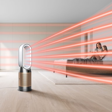 Dysons Air Multiplier-teknologi projiserer renset luft gjennom hele rommet, noe som sikrer jevn sirkulasjon. Ved å trekke inn luft fra alle hjørner leverer den en kraftig og jevn strøm av ren luft, og sørger for at hele rommet blir oppfrisket.