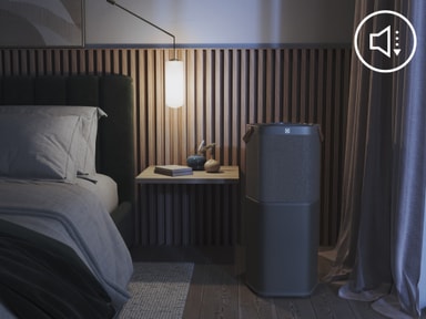 Med et minimum støynivå på bare 17,3 dB(A)5, er Pure 600 stillegående, slik at du kan sove fredelig i kontinuerlig renset luft. Selv ved maksimal hastighet er støynivået bare 52,8 dB(A)5 – stillere enn middagssamtaler.